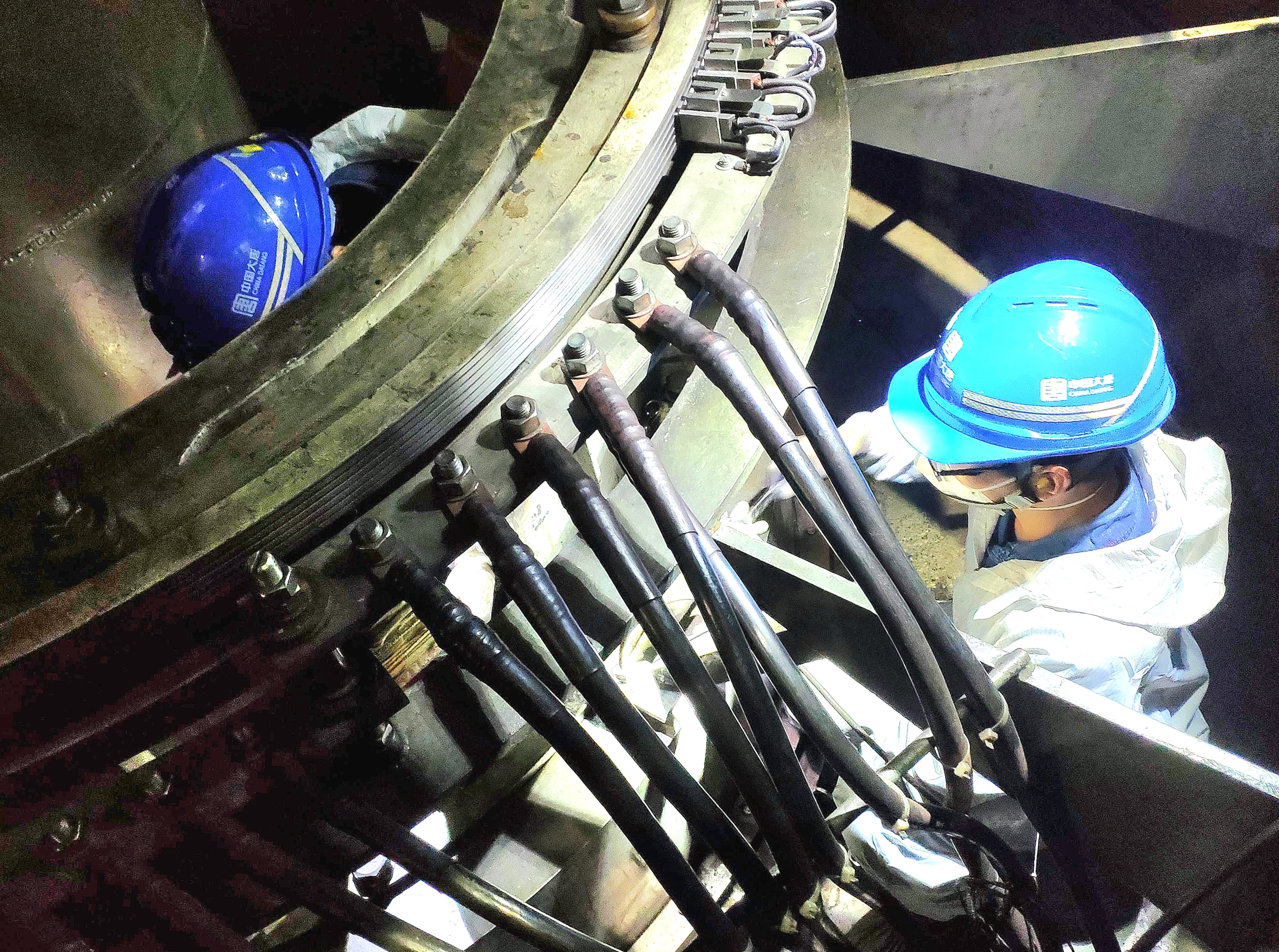 在眾人的努力下,第一塊短路板終于對準(zhǔn)位置,接下來就是擰緊螺栓。大家拿起扳手,開始一顆顆地?cái)Q動螺栓。每擰一顆螺栓,都需要用盡全身的力氣,扳手在他們手中不停地轉(zhuǎn)動,發(fā)出“咔”的聲音。