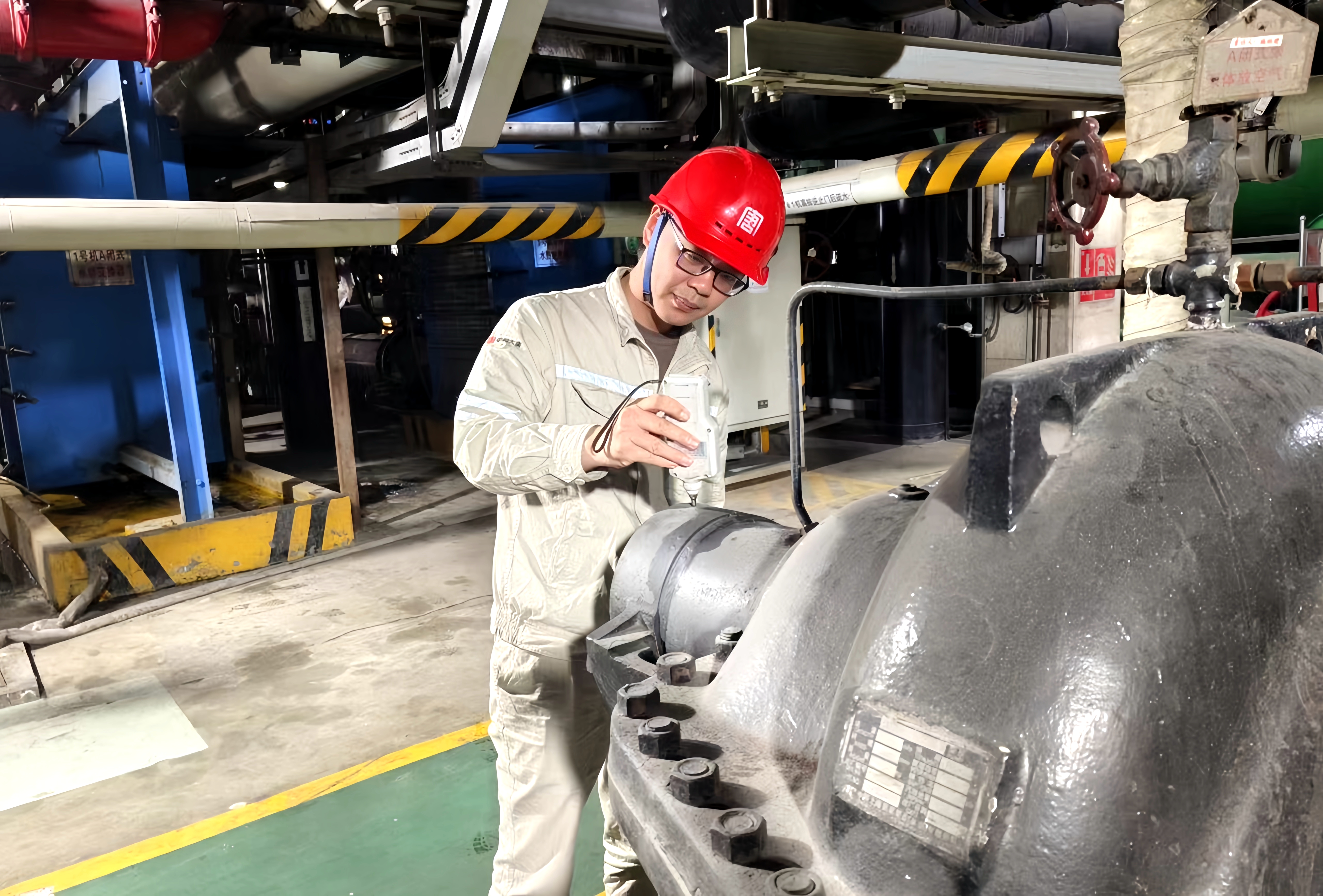 機(jī)組啟動(dòng)階段,他嚴(yán)格踐行“望聞問切”工作法:觀儀表數(shù)據(jù)知系統(tǒng)狀態(tài),聽設(shè)備異響辨故障位置,摸軸承溫度判潤(rùn)滑狀況。當(dāng)轉(zhuǎn)速突破3000rpm的那一刻,監(jiān)控屏上跳動(dòng)的參數(shù)全部精準(zhǔn)歸零。這場(chǎng)歷時(shí)23天的“戰(zhàn)役”,最終讓1號(hào)機(jī)組熱效率提升0.3%。