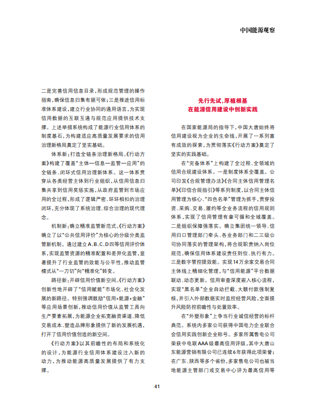 [中國能源觀察]貫徹落實《行動方案》 擔當能源信用體系建設排頭兵