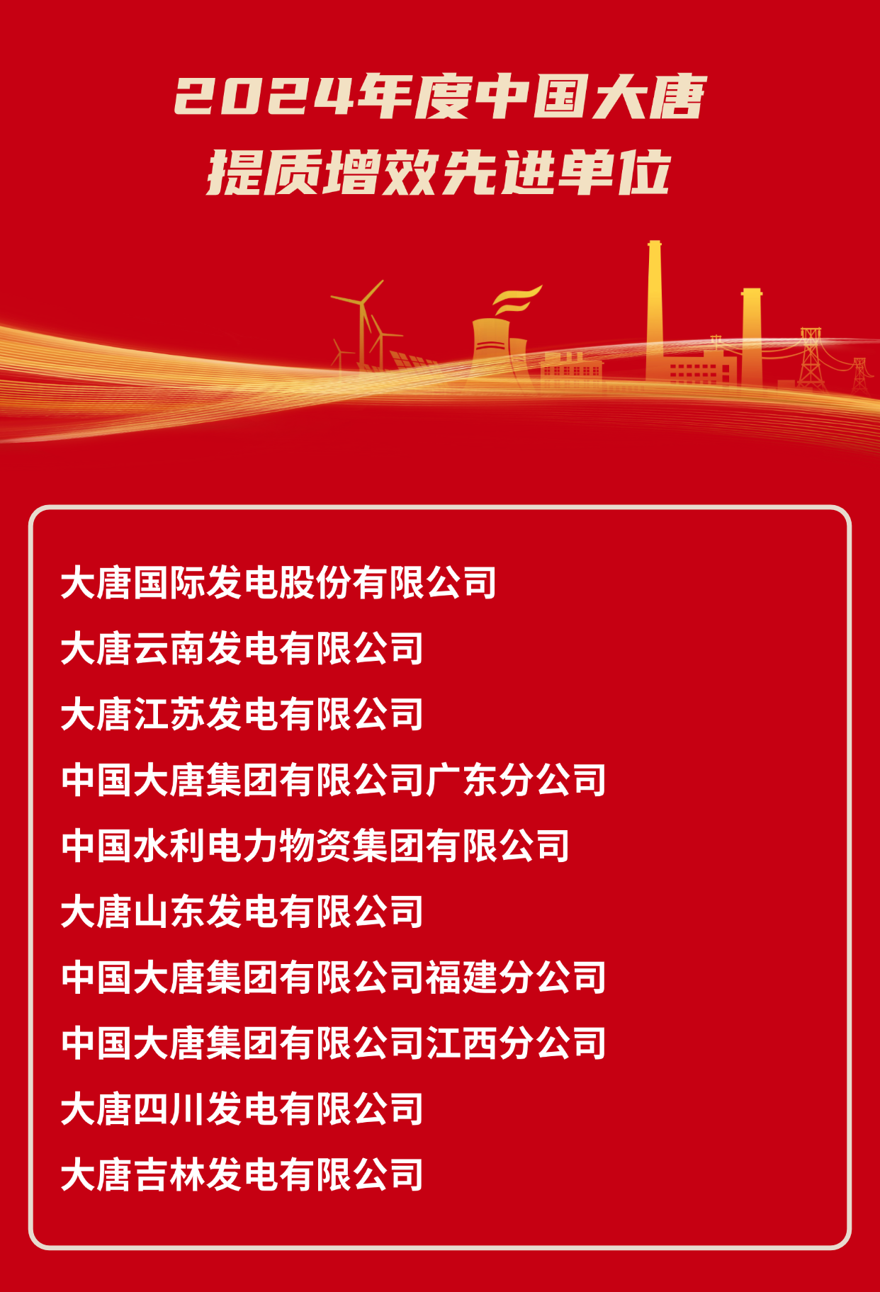 2024年度中國大唐集團有限公司提質(zhì)增效先進單位