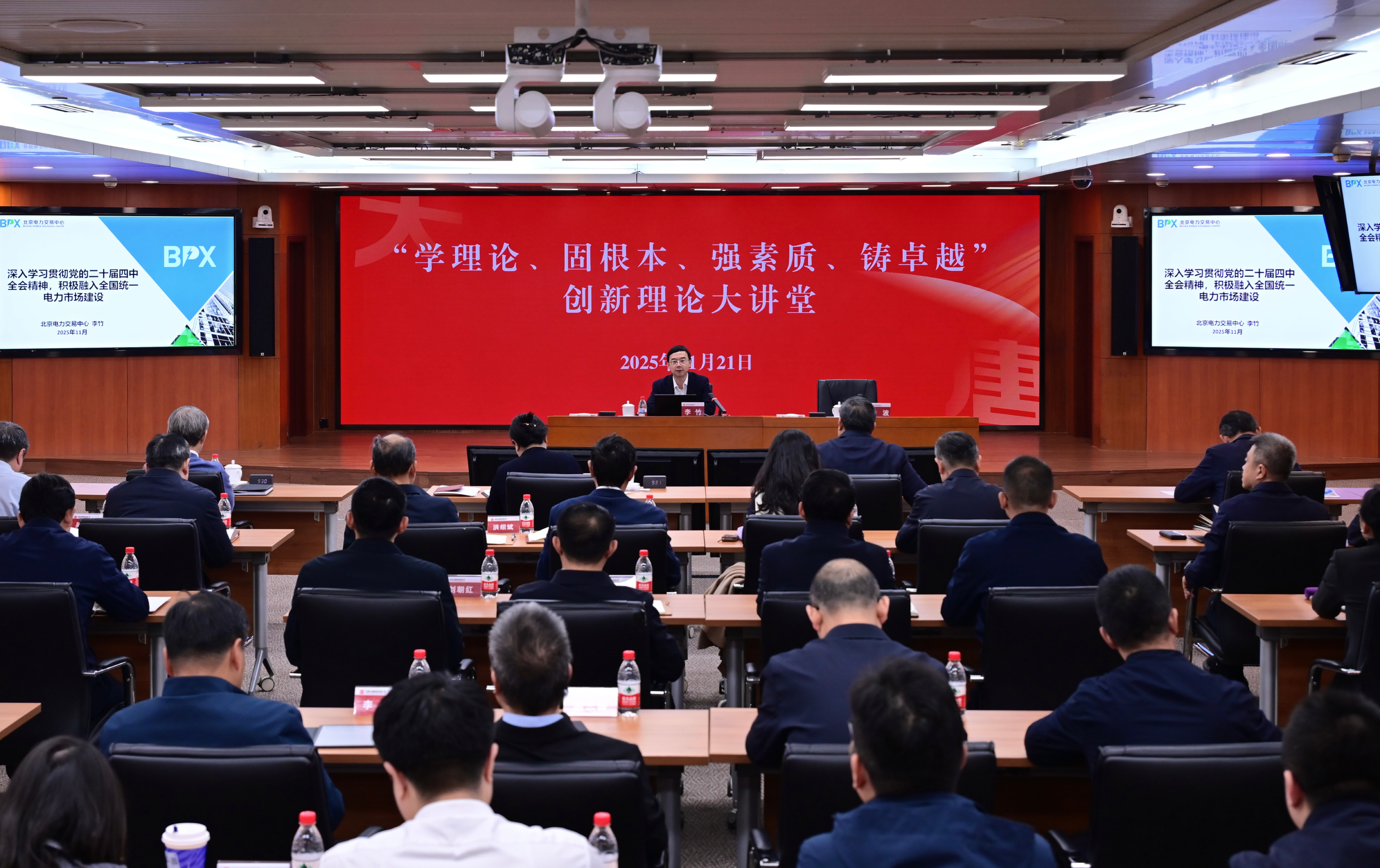 11月21日,中國(guó)大唐集團(tuán)有限公司“學(xué)理論、固根本、強(qiáng)素質(zhì)、鑄卓越”創(chuàng)新理論大講堂再度開(kāi)講,邀請(qǐng)北京電力交易中心有限公司副總經(jīng)理、能源行業(yè)電力市場(chǎng)技術(shù)標(biāo)準(zhǔn)委員會(huì)副主任委員李竹作《深入學(xué)習(xí)貫徹黨的二十屆四中全會(huì)精神,積極融入全國(guó)統(tǒng)一電力市場(chǎng)建設(shè)》專題講座。集團(tuán)公司董事、黨組副書(shū)記余波主持講座,集團(tuán)公司領(lǐng)導(dǎo)王瑛、曲波、陶云鵬、茍偉參加講座。