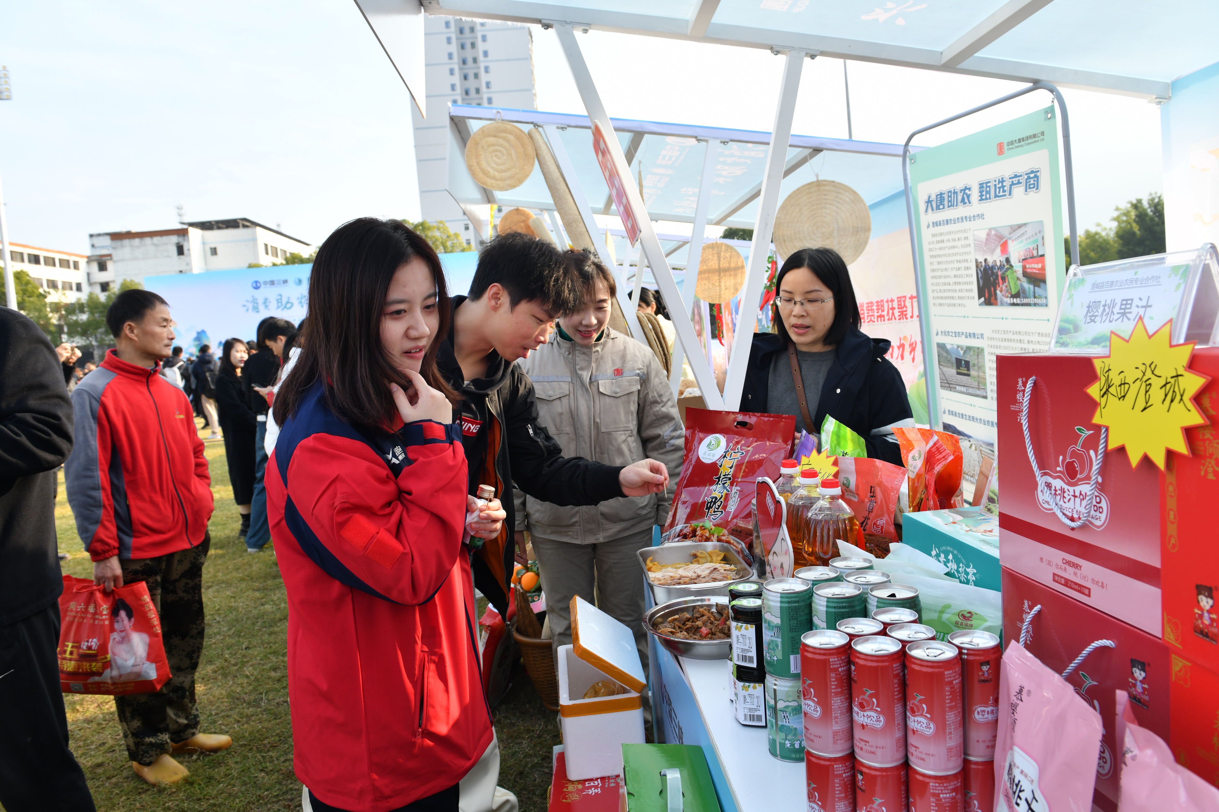 在中國(guó)大唐展位,甄選了來自中國(guó)大唐定點(diǎn)幫扶的廣西大化瑤族自治縣、陜西澄城縣的20余款特色商品進(jìn)行現(xiàn)場(chǎng)展銷。湖北省巴東縣沿渡河電業(yè)發(fā)展有限公司積極組織當(dāng)?shù)芈毠A力馳援,職工們化身“銷售員”,熱情地向參觀者介紹參展產(chǎn)品的特色。大化七百弄鹽焗雞、檸檬鴨香味撲鼻,澄城秋梨膏、櫻桃汁令人垂涎欲滴,吸引了大量消費(fèi)者駐足品嘗購(gòu)買。