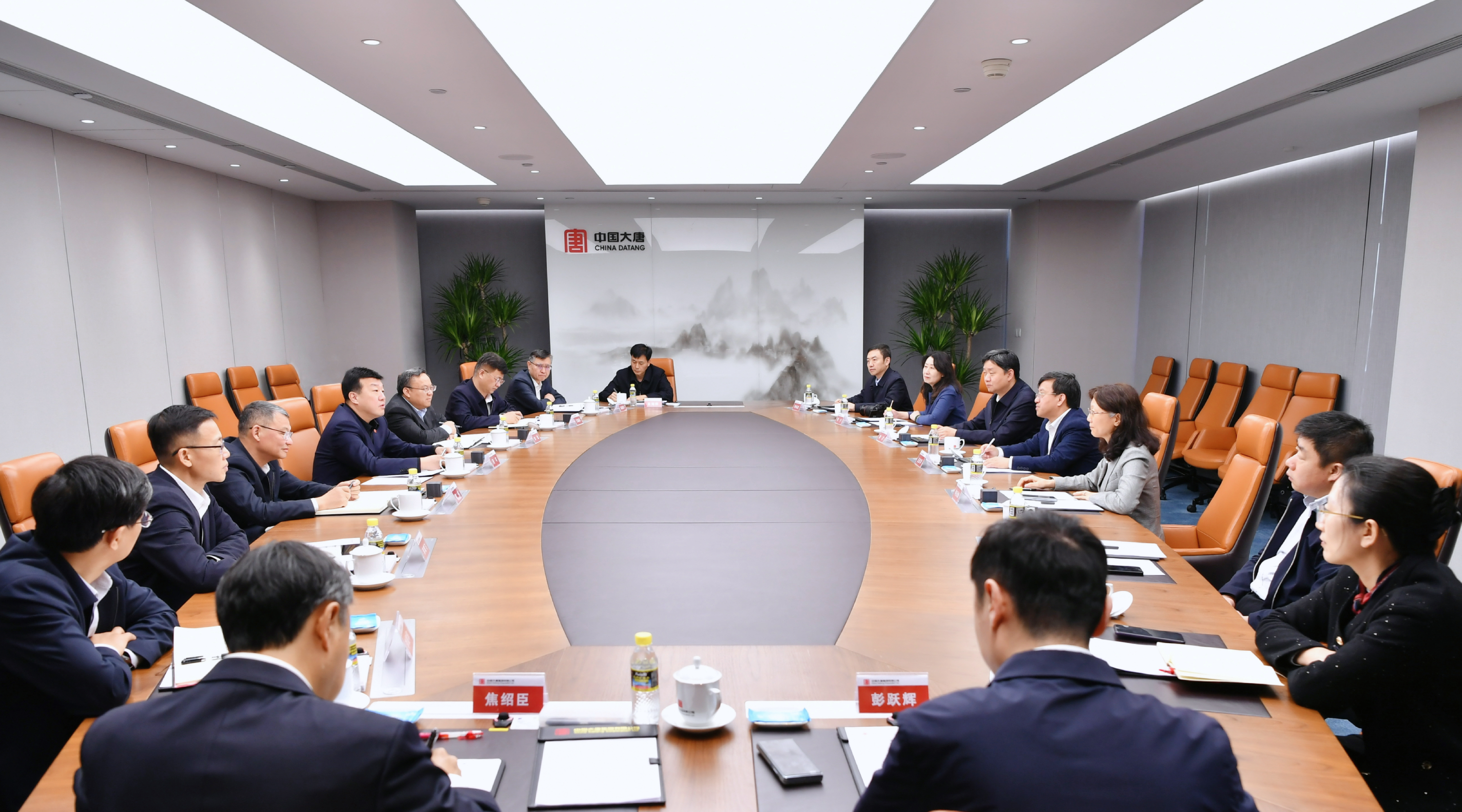 中國(guó)大唐董事、黨組副書(shū)記余波,黨組成員、副總經(jīng)理茍偉;華北電力大學(xué)黨委常委、副校長(zhǎng)房方參加會(huì)談。